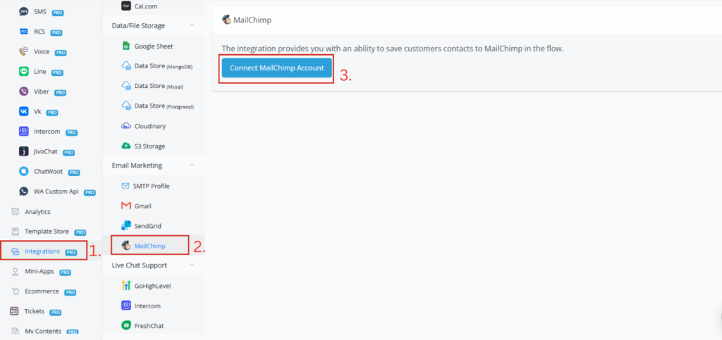Follow step 1 to 4 in the above picture, open MailChimp’s website.