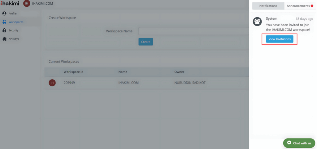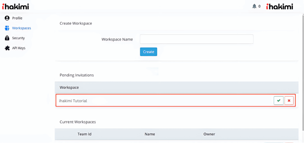 If the new member is already an ihakimi user, he/she can accept the invitation in the ihakimi notification center (the bell icon in the upper right corner, see 2 screenshots below).