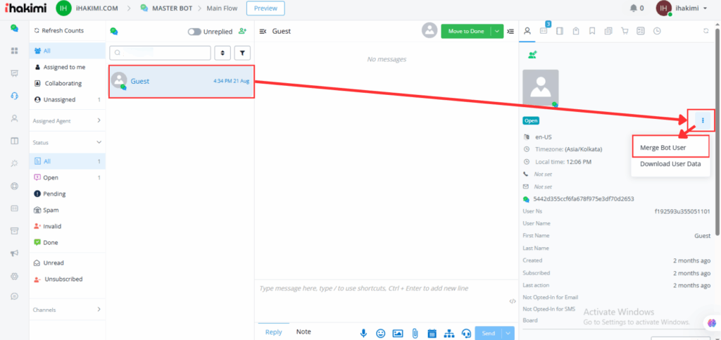 - Click on Merge Bot User from the dropdown menu.