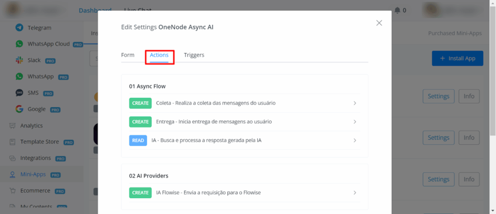 Here, you can view all the mini apps you’ve installed. Every Mini-Apps has two buttons “Setting” and “Info”.