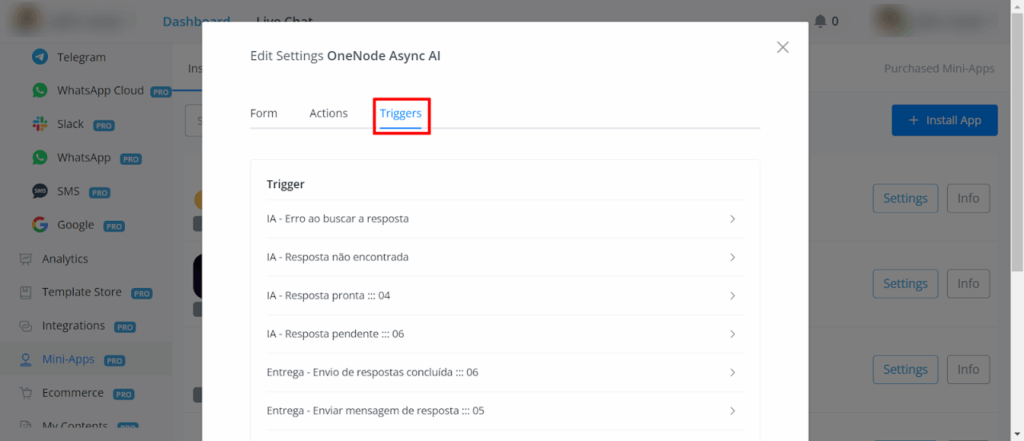 If the mini app have triggers, you should find the triggers in Automation → Triggers.