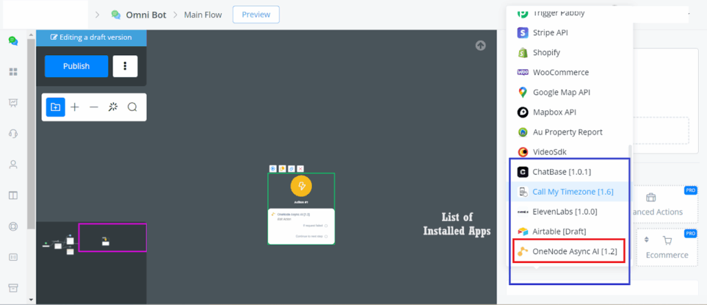 Go to Actions -> Integration-> you will see the list of installed Apps