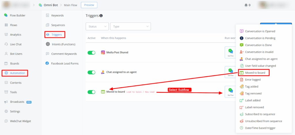 We have a trigger that activates when someone moves to a board. This trigger allows you to inform an agent that a lead has been generated or to use it for your own specific use cases.