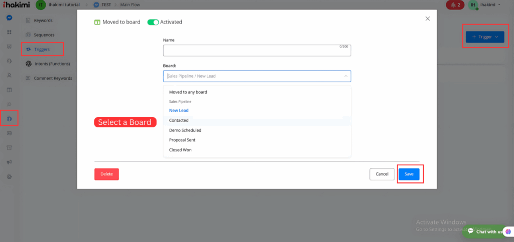 In the Trigger, you need to select the board name. This will ensure the trigger activates on the specific board you selected.