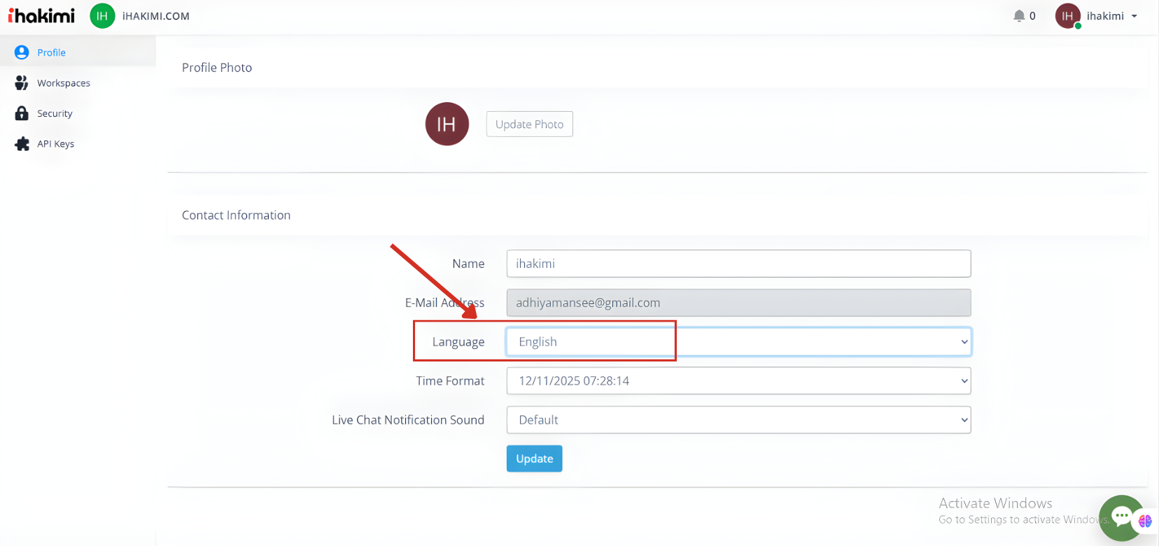ihakimi support multiple languages, and you can find the multiple language settings in your user profile as per screenshot below
