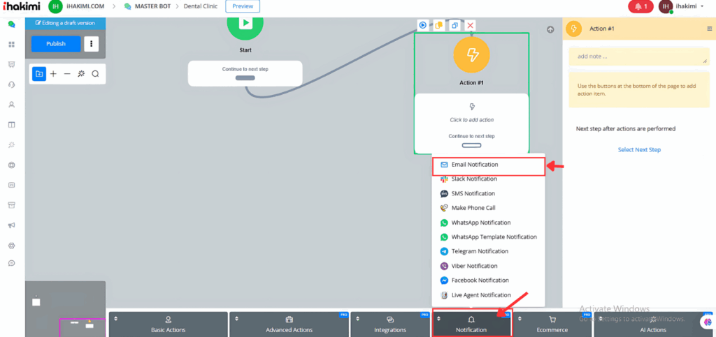 To send a WhatsApp notification, you will need to set up your WhatsApp integration first.