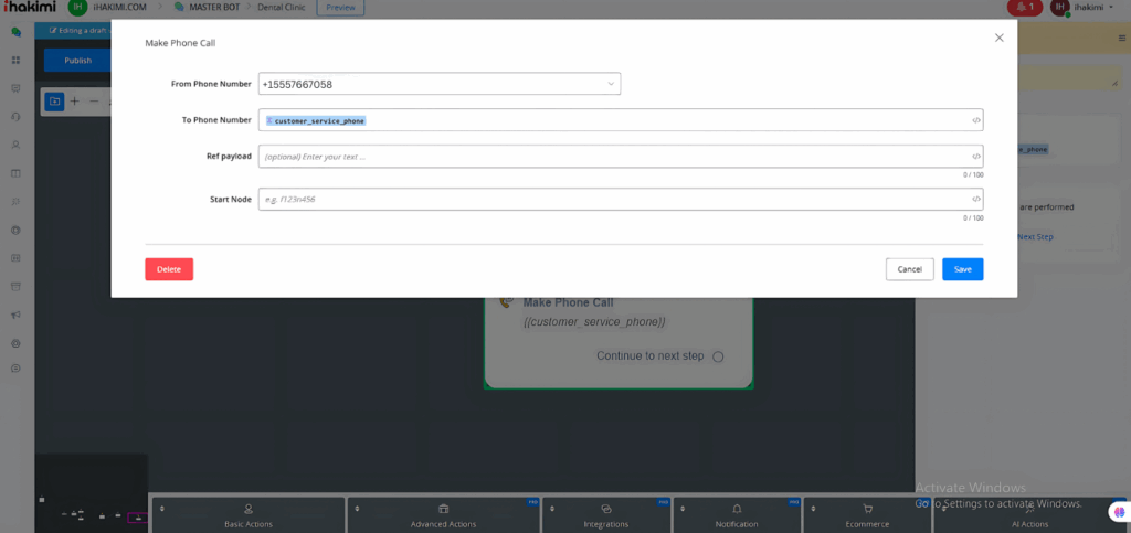 Moreover, you must make a voice flow connected to this phone number otherwise your voice bot don’t know what to say.
