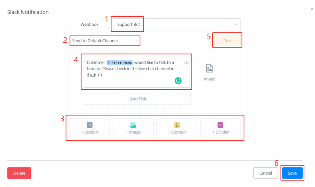 Unlike “Send Email” step, email notification only supports text message type. Check “Send Email” step in “Email Integration” page if you need more message types like images, buttons, files, etc.