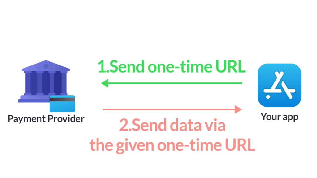 One-time URLs are used to receive data. When you need a party to send back data to the app, you give them a one-time URL.