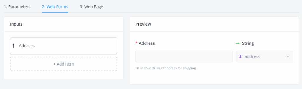 Add as many web form inputs as you need, click on Save when you finish. Have a check on the Preview area.