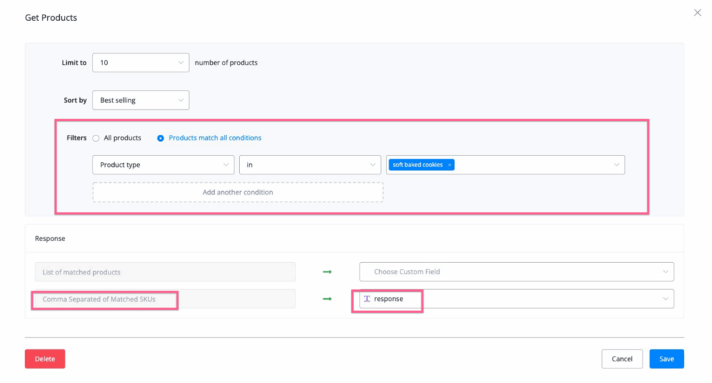If you have already synced Facebook Catalog with ihakimi ecommerce, you can use the “Get products” action to dynamically populate the retails IDs.