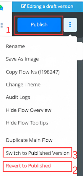 - click “Edit Flow” on the upper left/right corner of the flow to enter the draft version