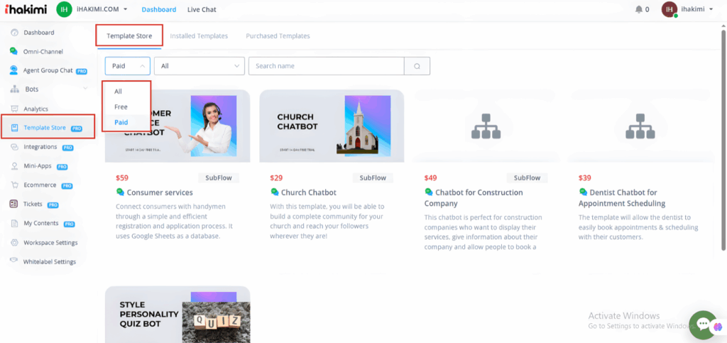 Under Template, you can first filter the flow to check paid templates.