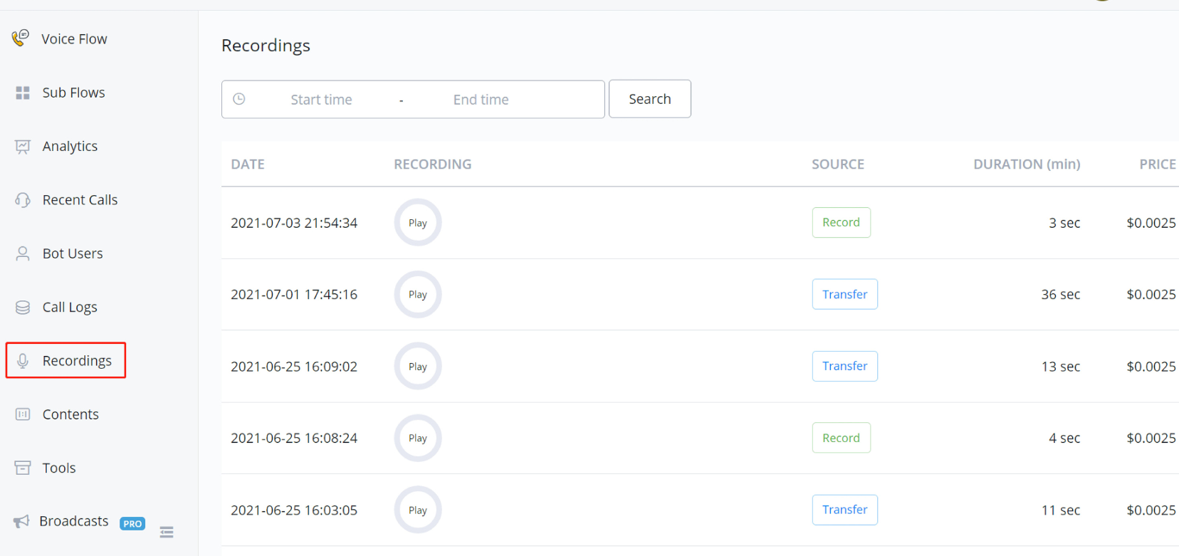 You can record the conversation after transferring for training purposes, etc. Similarly, check the recording from the “Recordings” section from the left sidebar.