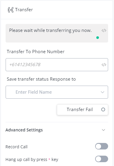 Let say I have a voice bot for the number +61412345678, and I put a DTMF question after the Start point of the main flow. The extension “1234” will be considered as the input for this DTMF question. In this way, you are routing the calls automatically.