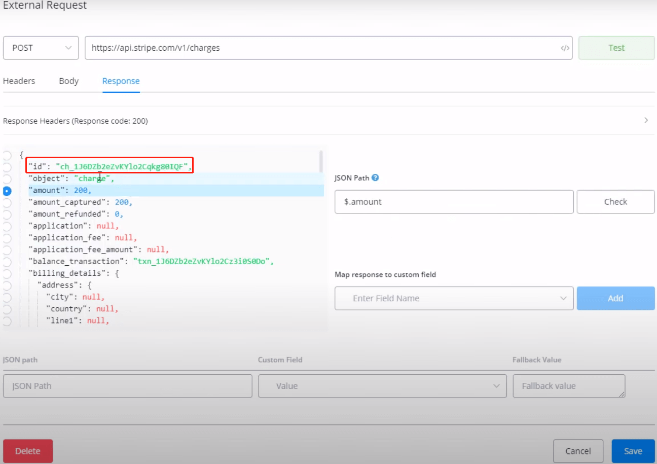 In the response you can see there is an id started with “ch_”, which is the payment confirmation code. That means, you’ve successfully made a payment.