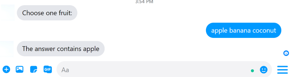 This is a question type listing limited quick answers and user have to choose only from these quick answers. For example, when choosing property type, list only house, townhouse and apartment as quick answers. Therefore, if the user doesn’t click one of these three, a retry message appears.