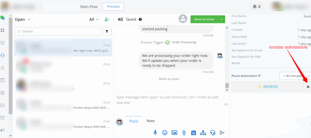 In live chat, agents often work within a timed framework. To ensure automation resumes smoothly: