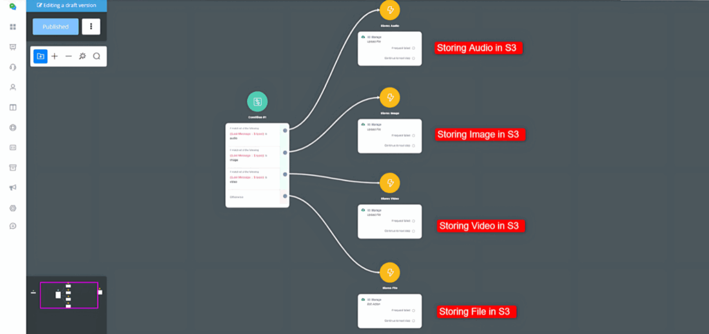 The Direct Upload to S3 feature simplifies and secures media file storage for all supported channels, including WebChat, Messenger, and Instagram. By supporting multiple file types—files, images, audio, and video—this feature ensures users can efficiently save their data directly to Amazon S3 storage, providing a streamlined and secure solution for modern applications.