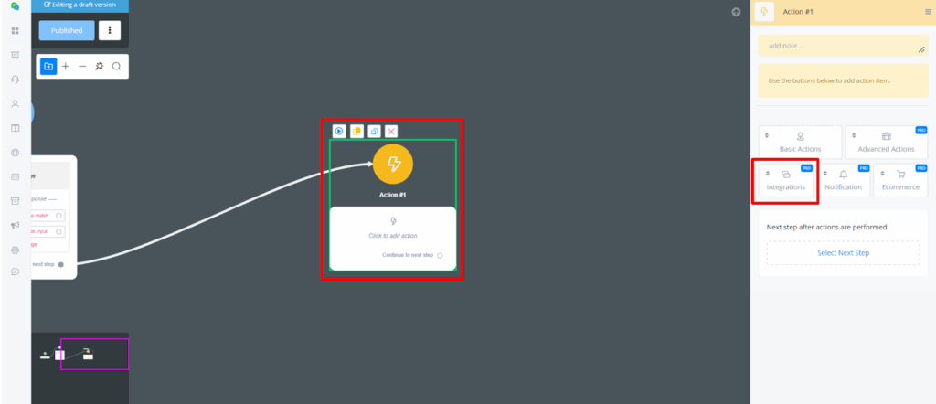 Go to the Flow, Select Action Node and choose Integrations Action.