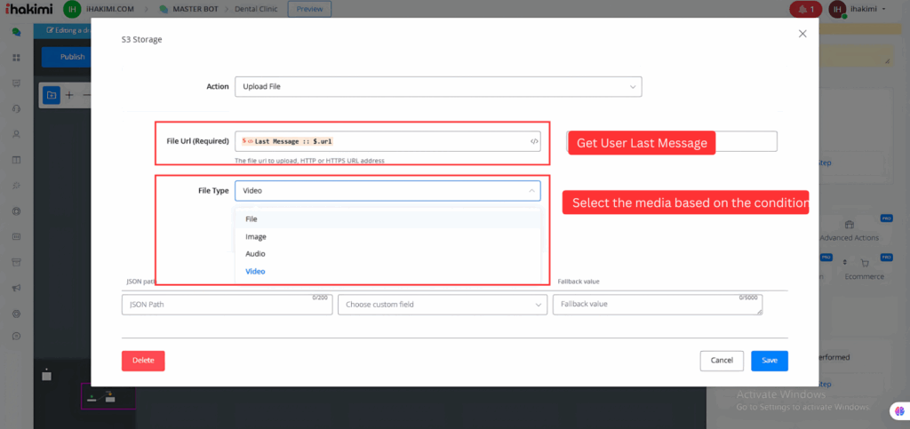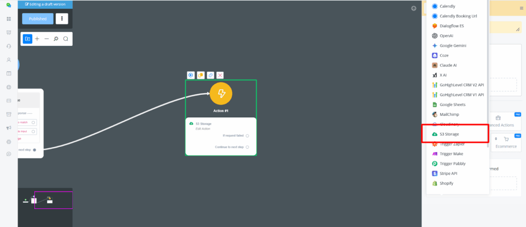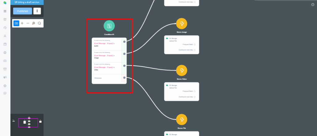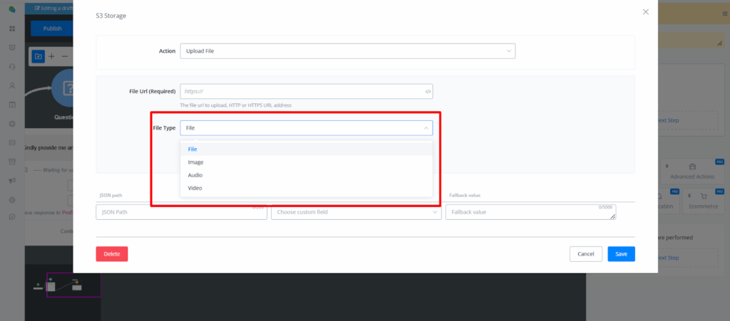 In the S3 Action Node, select the media type based on the condition configured in the previous node.