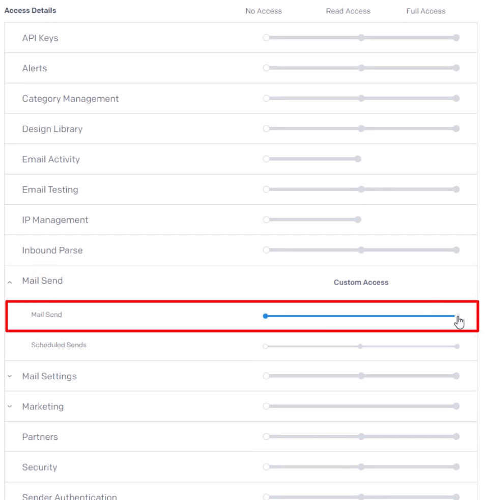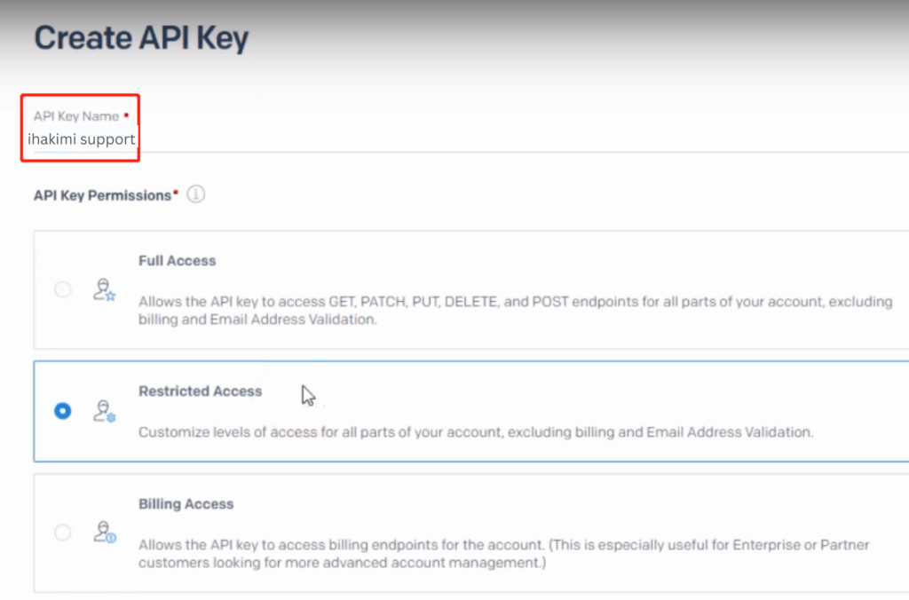 Make sure you give ihakimi full access to “Mail Send” and click “Create & View” at the very bottom of the page.