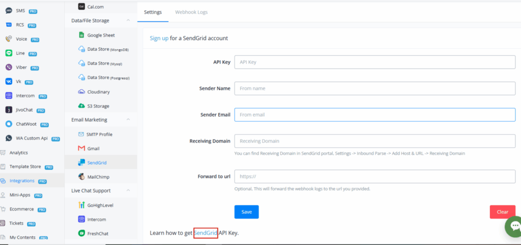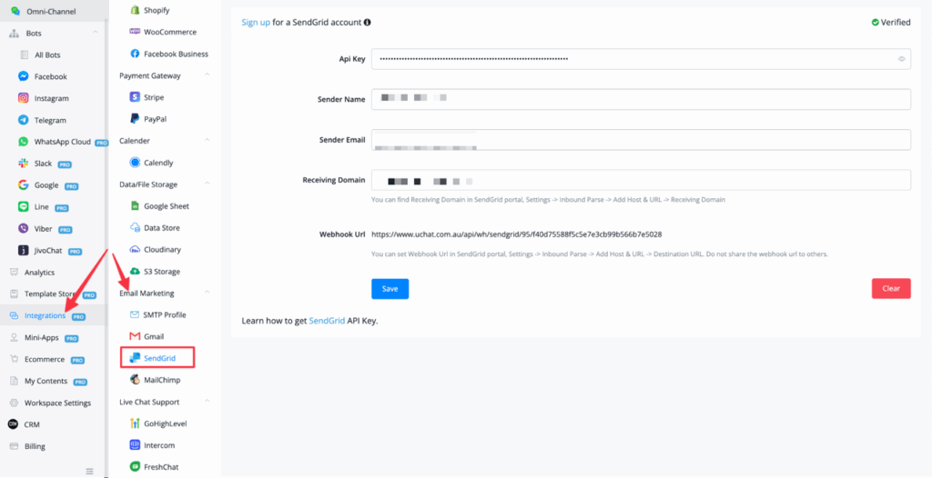 In order to connect to Sendgrid go to the integration section from your ihakimi dashboard and then go to the section Email Marketing and choose Sendgrid