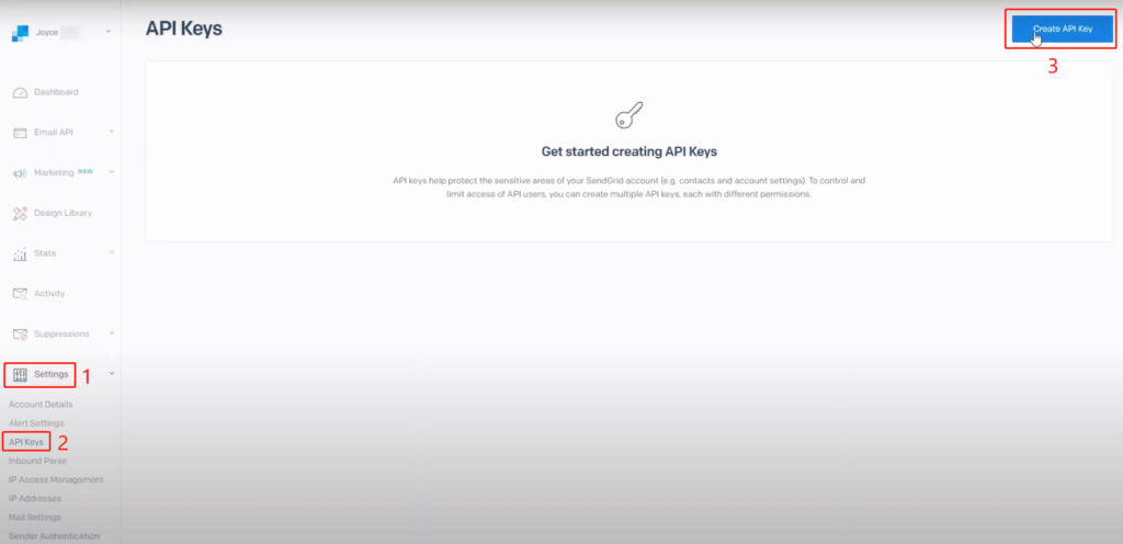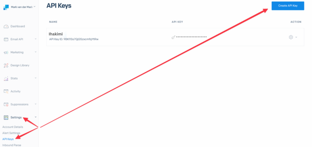 We will first grab the API key by going to Settings -› then select API Keys. Once here press the button “Create API Key”.