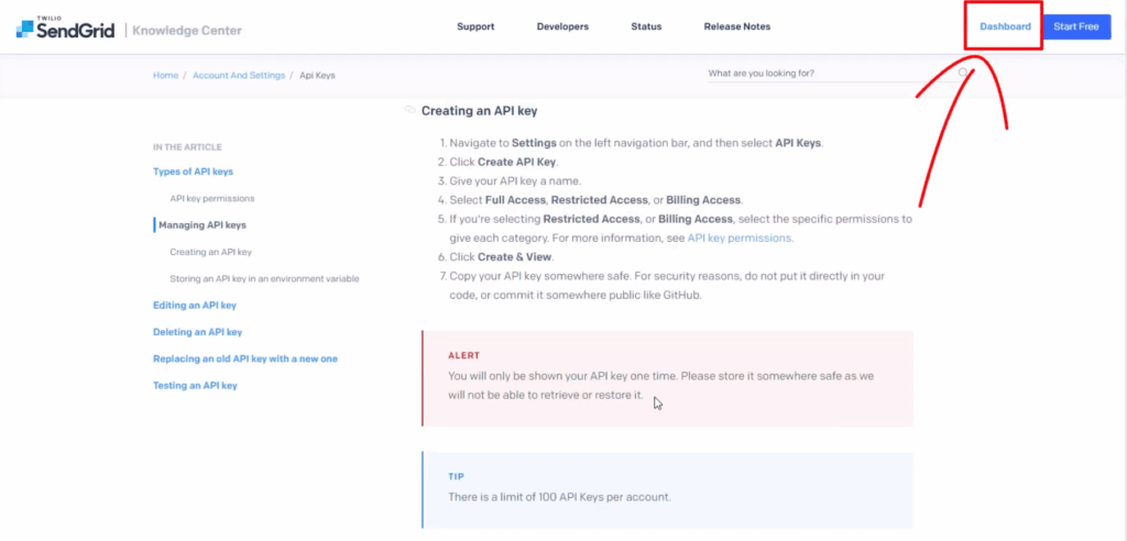 Log in yourself, enter your SendGrid “Dashboard” from the upper right corner.
