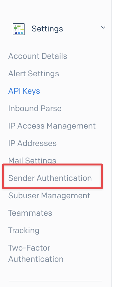 From the left-hand menu where you found the section for API keys go down a bit until you see Sender Authentication and press it