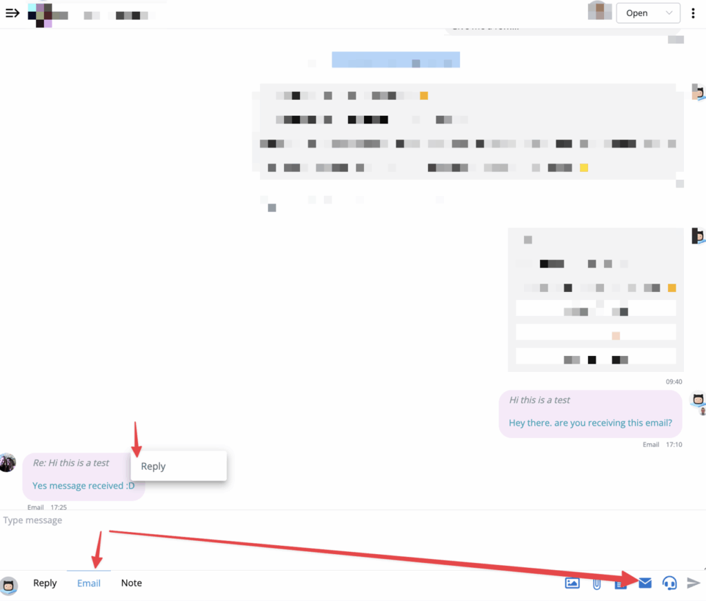 You can either send an email by pressing “Email” between Reply and Note at the bottom or by going to the email icon on the right hand side.