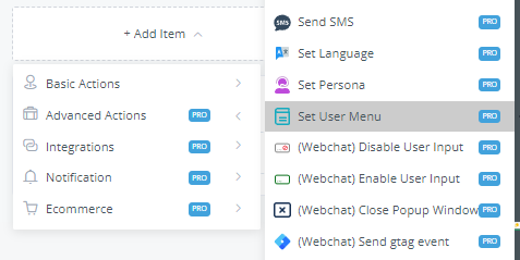 Set User Menu is a good way to provide shortcuts to your chatbot. So instead of having the user go through each flow, we can use this function to have the user go straight to whatever flow they want to go.