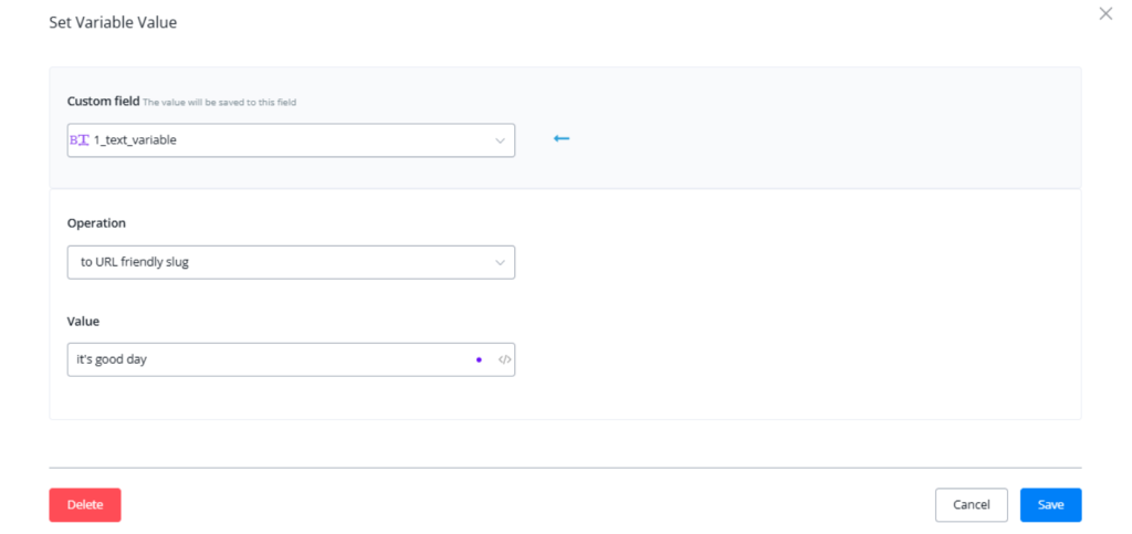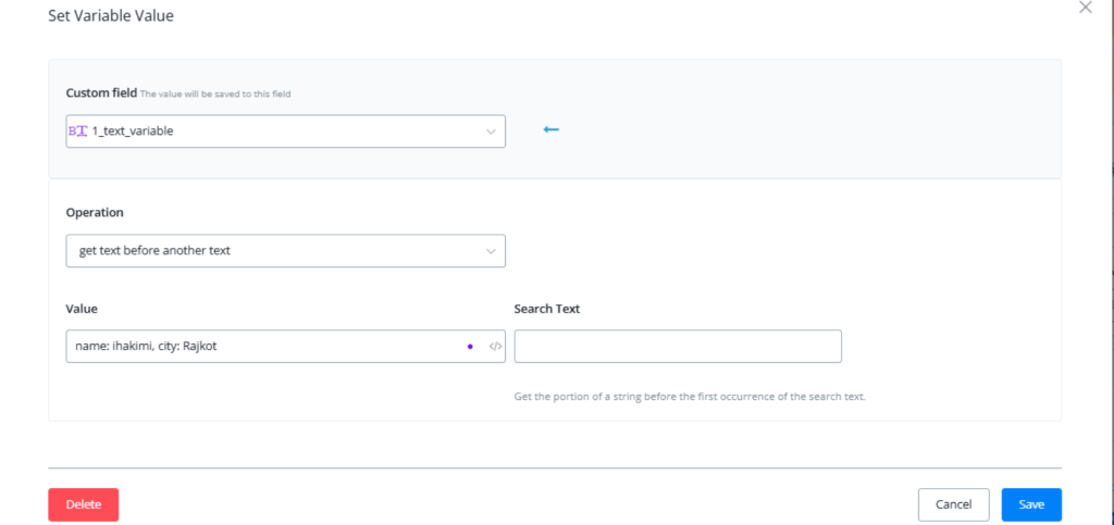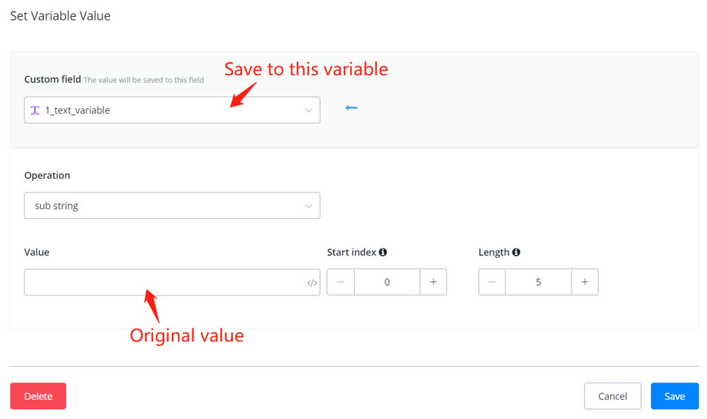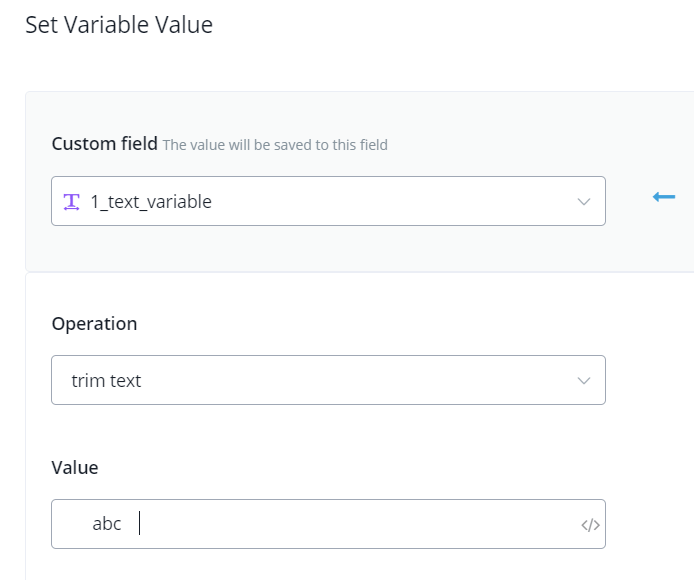 TIP – “input value” for text variable can be used to connect several text variables. See the below picture for where to put original value and operated value.