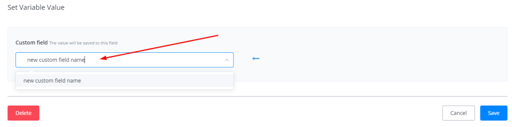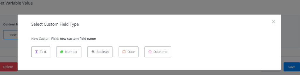 Should you need to create a new custom field, just type in the name and choose the type of custom field you’d like to create.