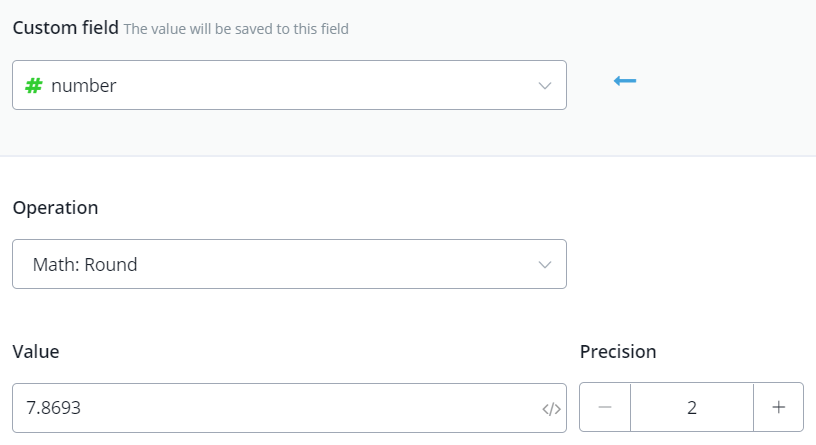 Once you click on the set custom field action, you’ll be able to choose which custom field needs some to update in terms of value.