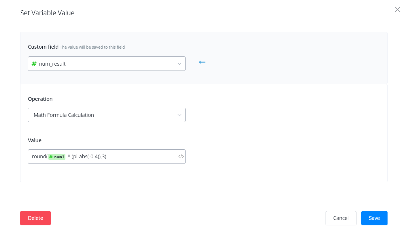 With this operation, you can now do formula calculation directly in the Action Step – “Set Variable Value” and Condition Step – “Value”.