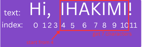 | get part of the text | “Hi, ihakimi!” | “ihakimi” |