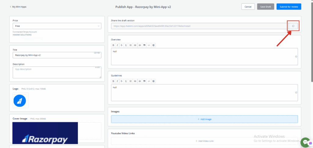 TIP – If the app is paid to download, make sure you connect your Stripe account before you submit it for review. Every single payment will be directly credited to your Stripe account with a 30% commission deducted.