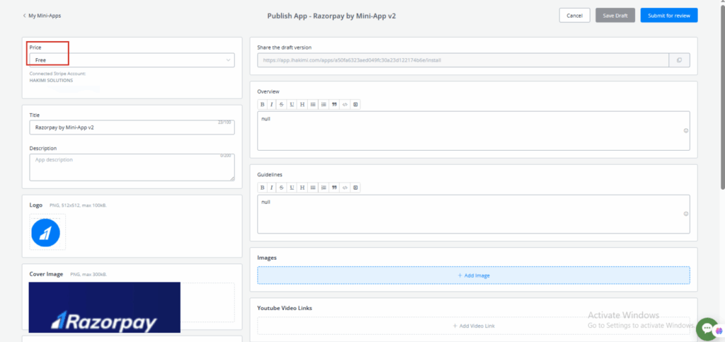 Fill in compulsory information including the price, overview, guidelines and optional information including screenshots and videos.