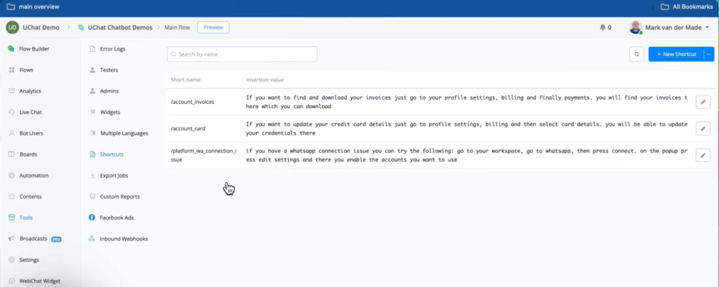 Live Chat shortcuts are pre-defined snippets of text that you can insert into chat conversations quickly and easily. They are ideal for frequently used information or responses, saving you time and effort.