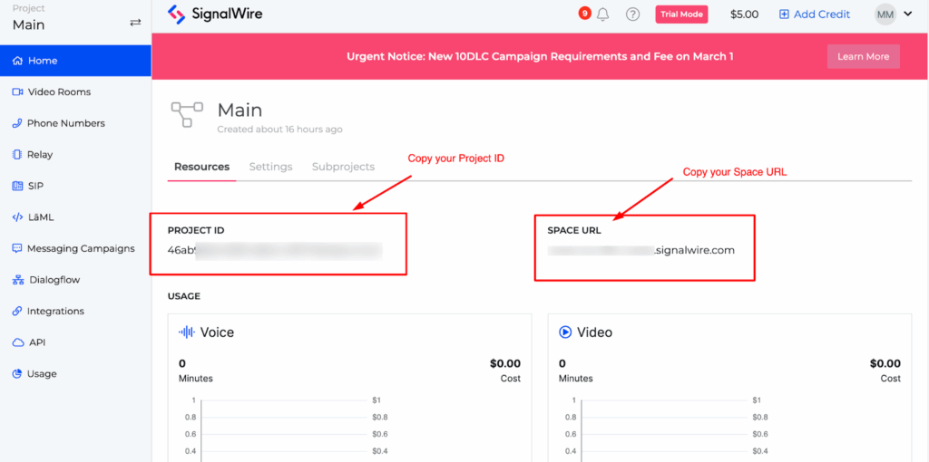 In order to grab your credentials, you will need to login into your SignalWire account.