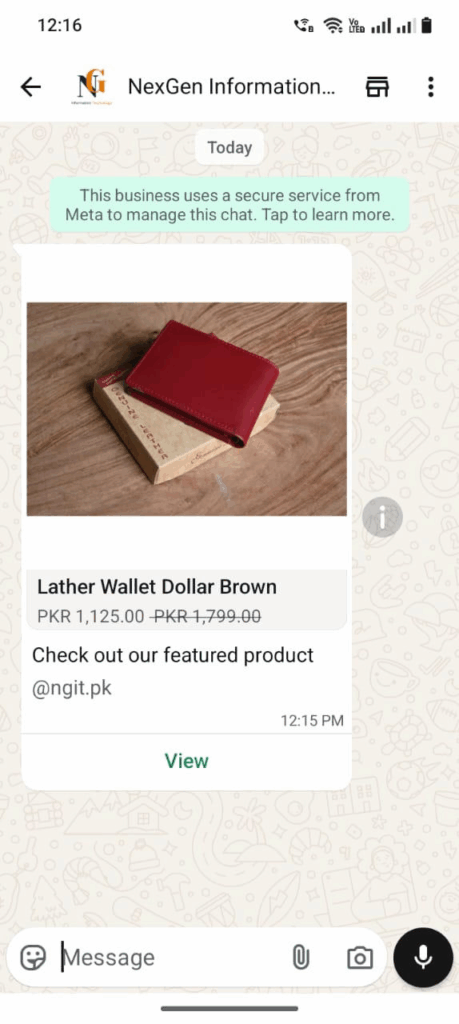📌 Limitations: Only products already uploaded and approved in your WhatsApp Commerce Catalog can be shared.