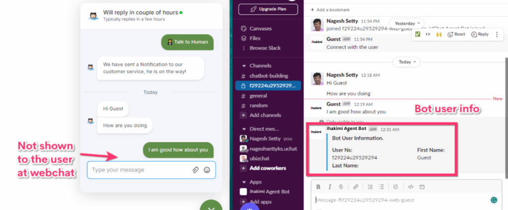 And in the group chat, you can discuss with your team member, and you can use @teammember to discuss, and the discussion between the team members won’t be sent back to the user.