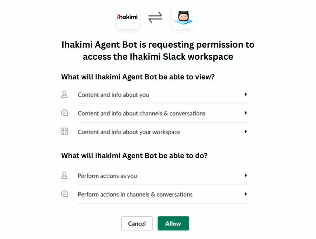 You can click the button below to add the ihakimi Agent bot to your Slack account Slack Account