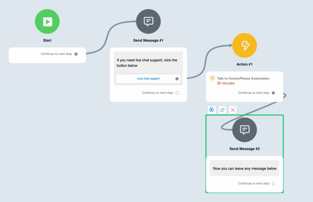 - Bot_send_subflow: You can send a subflow to the user, and after the user received the flow, the user will back to automation