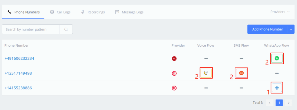 Click “Add Number” in area 3 in the above picture after connecting your provider with ihakimi.