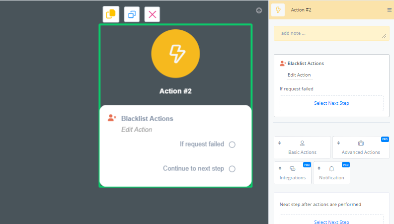 The Blacklist Actions can be found in the Advanced Actions section of the action node.