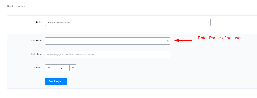 This action allows you to add bot users into the black list using their phone number