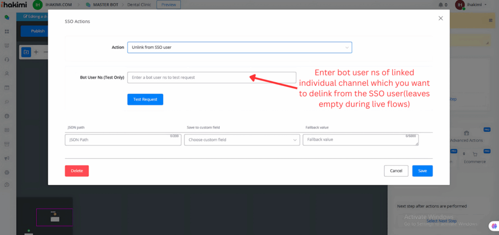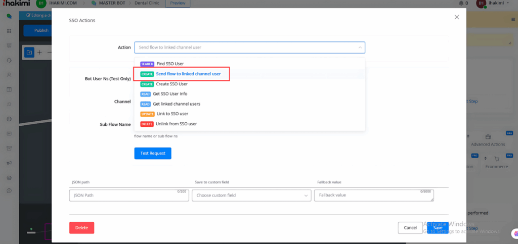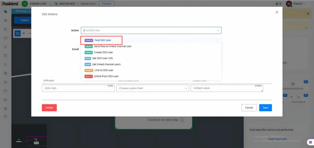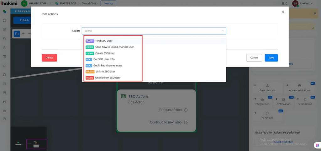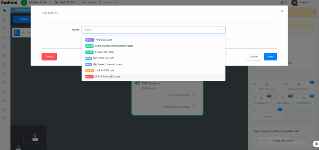 ihakimi now allows its users to further expand on its SSO login with SSO actions. You will now be able to link, delink channels, and other actions which you were not be able to do previously using automations in flow builder.