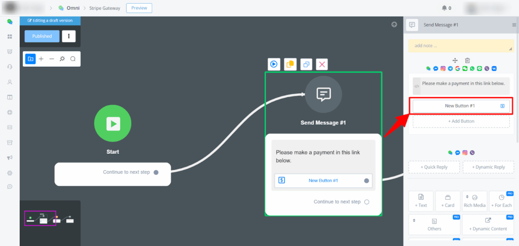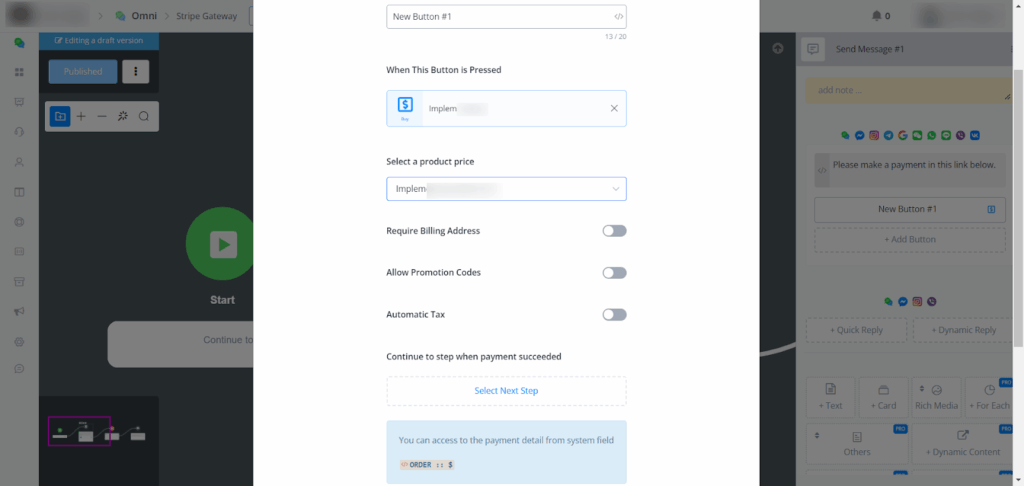 - After configuring the payment button, define the action the bot should take after the payment is successfully completed. This could be sending a confirmation message to the user or continuing to the next step in the flow.
